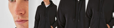 Full zip hooded sweatshirt. B&C Perfect Sweat Technology - high quality fabric for perfect printability, comfort and durability. Tone-on-tone covered zip with piping for overall decoration. 3 panelled hood with internal earphone loops. Single Jersey lined hood with twill tape inside neckline. 2 front pockets with reinforced seams. Right-hand inside pocket has opening for earphone cord. Flatlock topstitching on shoulders and armholes for better strength. Cuffs and bottom hem in 1x1 rib with elastane. Side seams.