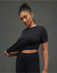 A low contoured scoop that flatters the neckline with a slim sheer rib fit. 50 single combed ring-spun, super soft sheer mini rib knit.