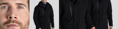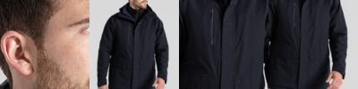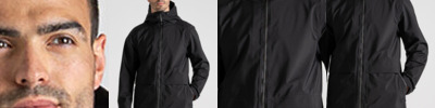 3-in-1 jacket. Waterproof and breathable shell outer with a softshell inner jacket. 10,000mm waterproof and 20,000g/ m2/ 24hrs breathable. Recycled polyester stretch mesh and recycled polyester taffeta lining outer. Recycled polyester elastane softshell with EcoShield DWR finish and striped microfleece back inner.