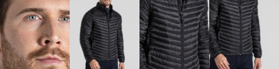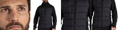 Part-recycled polyester elastane softshell with microfleece back and H2OShield DWR finish to upper body and hood. Part-recycled polyester ripstop to front and back body with H2OShield DWR finish, recycled polyester hollowfibre fill and recycled zip tapes.