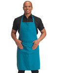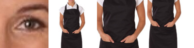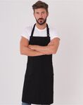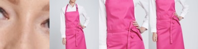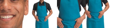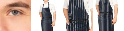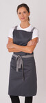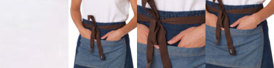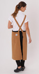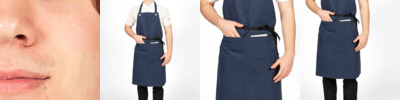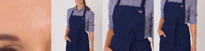 - This bib apron features an adjustable halter with brass eyelets to hold it, and the waist ties, in place.
