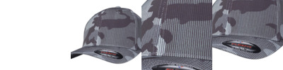 Flexfit camo stripe cap. Trendy camo print and subtle striped design. Slightly curved brim. Patented Flexfit technology.