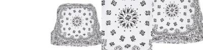 Bucket hat in a trendy bandana-style print, made of cotton and polyester, slanted brim with decorative seams running across.