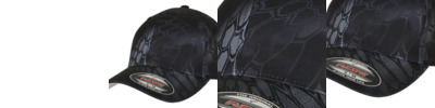 Urban Flexfit cap with a dark themed all-over print, made of polyester, pre-curved visor with decorative stitching, integrated Flexfit band.