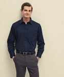 Standard collar and self-fabric chest pocket. Self-coloured buttons. WRAP certified.