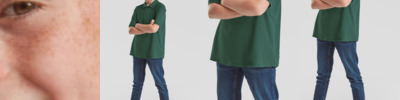 Finer knit gauge for enhanced printability. Produced Belcoro® yarn for a softer feel and cleaner printing process. One piece cotton/Lycra® neck for improved shape retention. Shoulder to shoulder taping. Twin needle stitching detail on neck, sleeves and hem.