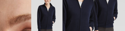 - Ribbed cuffs and hem with Lycra® for shape retention