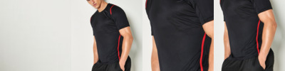 100% Polyester with moisture management. 1x1 flat rib collar. 1x1 rib ‘V’ insert. Contrast side panels. Contrast ‘V’ inserts at lower hem. Straight hem. Gamegear® /Cooltex® label printed on the inside back neck. Cooltex® woven label sewn in outer side seam.