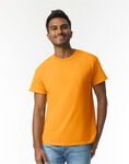 100% Cotton pre-shrunk ringspun jersey, 5/8” Rib knit collar, tubular knit, seamless twin needle collar. Twin needle sleeves and bottom hem. Taped neck and shoulders. ¼ turned to eliminate centre crease.