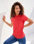 Made with our soft ringspun cotton blend, the Softstyle™ CVC women’s t-shirt features high stitch density for a smoother printing surface. Soft ringspun fabric feels great against your skin. Non-topstitched, narrow width, rib collar. Taped neck and shoulders for comfort and durability. Semi-fitted A-Line shape with side-seamed body. High-performing black tear-away label.