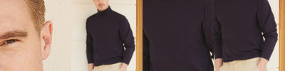 Cotton rich with double thickness rib roll neck. Reinforced shoulders and neck. Twin needle stitching. Hemmed cuffs.