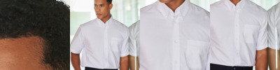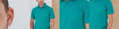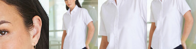 Stand up collar for increased shape retention. Washable at 60°C. Cuffed sleeves. 3 button placket with self-coloured buttons. Short sleeved. Also available in women's