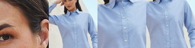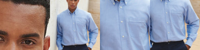 Classic cotton Oxford fabric. Wrinkle resistant finish. Shaped side seams.