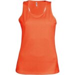 100% Polyester. Quick drying Lightweight fabric. Racer back style. Bound neck and armholes. Twin needle finishing.