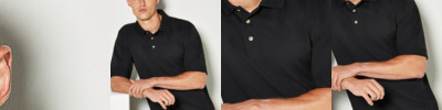 Comfort finish cuff seams. Tape reinforced shoulder seams. Twin needle stitched hem, shoulders and around armholes. Side vents. Taped back neck, slanted placket. Relaxed fit with Lycra®. Size 20 only available in Black and White.