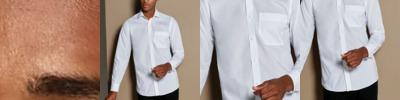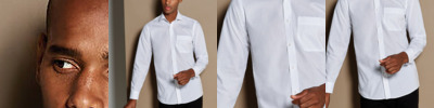 Stand up button down collar. Wrinkle free taping to seams. Rounded hem, back yoke, two darts to back panel. Two button notched cuff with one button pointed placket. Double stitched sleeves and side seams. Spare buttons. Kustom Kit® woven back neck label.