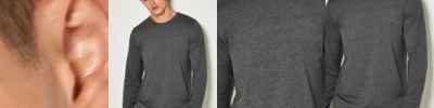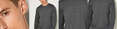 1x1 rib neck. Self-fabric beck neck and shoulder tape. Top stitched front neck trim. Twin-needle stitched hem and cuffs. Kustom Kit® tear out back neck label.