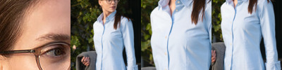 DETAILS: Shaped pleats, curved hem and toned contrast details. Buttons in mother-of-pearl colour. Third collar button at collar centerback. SUSTAINABILITY: Reach. Global Compact. Amfori. Accord. OEKO-TEX