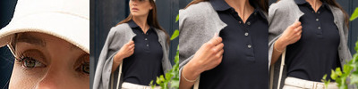 The Pro polyester polo is fashioned from a piqué knit, featuring twin-needle stitching for added durability, ribbed self-coloured collar and taped neck, with a 2 self-coloured button placket. It provides a modern and feminine fit.