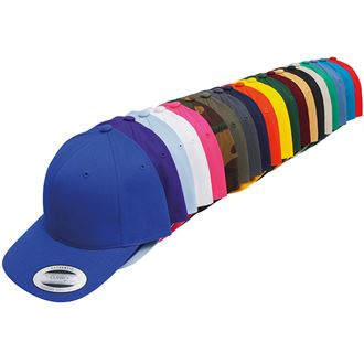 High quality, Yupoong cap. Classic style with centre front crown constructed from hard buckram and 100% cotton. Yupoong adjustable peak sticker, woven label and hang tag. Adjustable fit, one size fits all. High quality adjustable components include flip and close metal clasp with hidden compartment within cap to slide any excess material when adjusted. All components conform to international standards.