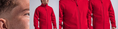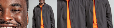 Two layer bonded softshell jacket with full zip front fastening. Relaxed fit. Two front zipped side pockets. Chin guard with internal storm flap. Adjustable shockcord hem.