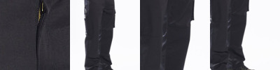 Contrast colour stitching. Contrast panels. Double rule pocket. Hammer loop. Reflective piping. Side pockets. Triple-stitched seams. Two back patch pockets. UPF 50+. Side elastic waist. Holster pockets. Gripper elastic on inner waist. Top-loading knee pad pockets. Smart phone pocket. D-ring. 12-pockets. Cargo pocket on side leg. Adjustable leg length. Reinforced panels . Durable polycotton fabric.