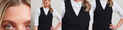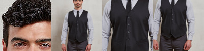 Contemporary style 4 button waistcoat with 2 functional watch pockets. Self fabric back.