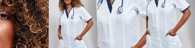 A practical and very stylish addition to our healthcare range, the "Daisy" Tunic offers a V-neck styling with contrast trimming. Designed with a feminine fit in mind, the "Daisy" features side and back pleats and useful curved side pockets, again featuring a piped contrast edging.