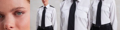 This women's long sleeve blouse offers tabs on the shoulders for the application of Epaulettes (PR715) and the stiffened collar makes it easy to affix a clip-on cravat (PR711).