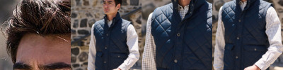 Quilted water repellent micro poplin. Thermo-Guard insulation. Polyester taffeta lining. 2 Lower patch pockets with side hand warmer entry. Back vents with stud fastening. Internal side seam zipped embroidery access.