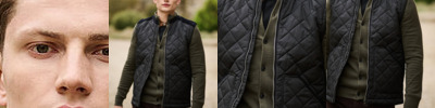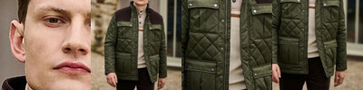 100% polyester water-repellent quilted micro poplin fabric, 140gsm. Thermoguard body insulation. Corduroy shoulder and elbow overlay panels. 2 lower pockets. Reach certified. Ethical Trading Initiative certified.