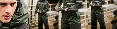 Hard-wearing polycotton fabric with WR finish. Durable nylon overlay panels offer extra protection from sharp objects. Reinforced triple stitched seams and crotch.
