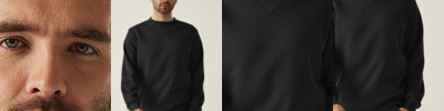 35% sustainable cotton and 65% polyester brushed back fabric. Ribbed cuffs and hem. Crew neck.