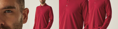 65% polyester, 35% cotton piqué fabric. Long- sleeved. Polo collar.