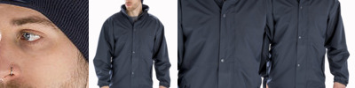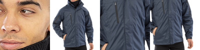 Tech: Waterproof 3000mm, Breathable 2000g, Windproof. Contrast twin needle stitching and bar tacks. Fashion shaped longer back panel. 4 outer and 2 inner zipped pockets. Quilted par-fleece lined. Stud closing storm flap. D-ring in LBP pocket. Tear release cuff. Removable hood. Taped seams. Reflective detail. Adjustable hem. Stand up collar. Hangtag. Rugged look. Hardwearing. Ready to brand – tag free. Corporate managers jacket styling.