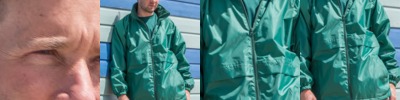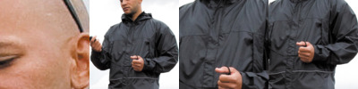 - Outer: 210T StormDri polyester with PU coating. Lining: Body polyester sport mesh. Hood and sleeves: 65gsm nylon taffeta