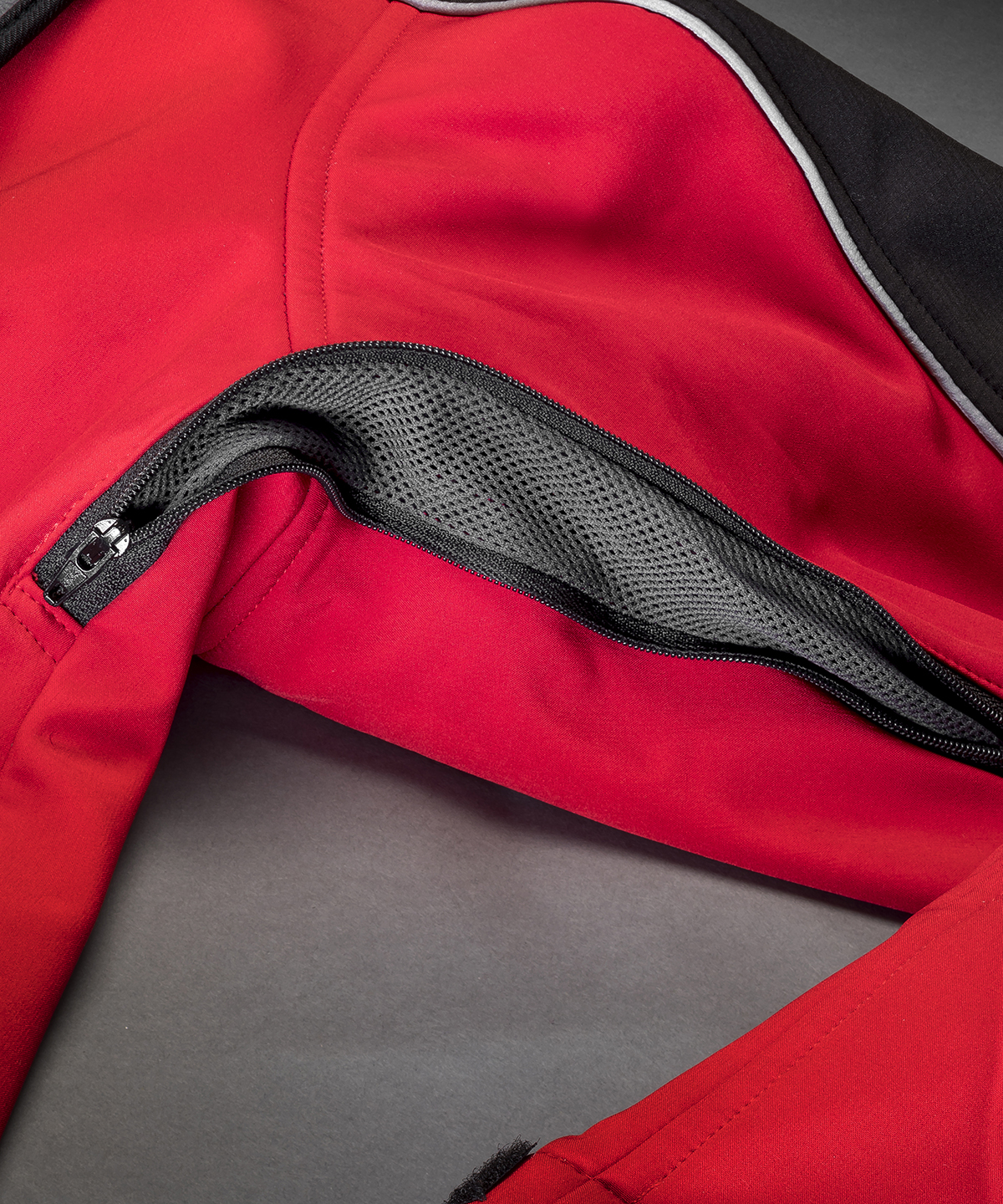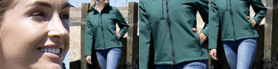 Material: Soft shell three layer bonded fabric: outer layer 100% polyester and inner micro fleece layer.