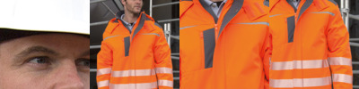 Tricot-lined hood in collar with tear release fastening. Reflective detail and diagonal print to body and sleeve. Heavy duty 2-way zip with studded outer storm flap. Inner storm flap with chin guard. Adjustable shock cord hem. Contrast grey tricot lining. 3 zipped outer pockets. 2 inner pockets. Inner storm cuff. Stand-up collar. Hangtag. Tough and hardwearing look. Ready to brand - cutaway label. EN ISO 20471:2013 Class 2; GO/RT 3279 Issue 8:2013 Class 2 (Orange). Oeko-Tex certified.