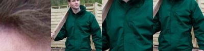 Full front heavy duty zip. Zipped side pockets. Hand filled wadding. Stud closing stormflap. Zip-off adjustable lined hood with stud fastening chin guard. Zipped inside chest pocket. Elasticated grip around waist and armholes. Cold weather core protection