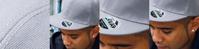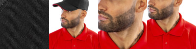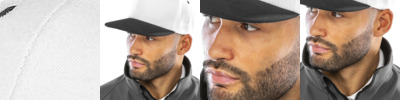 5 panel. Full profile. Pre-curved peak with 6 stitch lines. Hinged front support panel. No centre seam. Stitched eyelets. Easy tear release size adjuster.