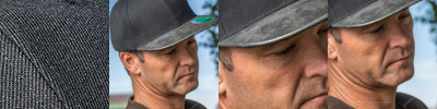 Herringbone weave. 6 panel. Low profile. Unsupported front panels. Pre-curved peak with 6 stitch lines. Contrasting colour sandwich peak. Stitched eyelets. Fabric size adjuster with antique brass buckle. Decoration Guidelines: Decorating methods: Embroidery & Transfer print Decorators access point: Open.