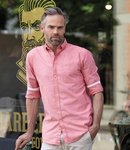 Ultra smart Oxford shirt in a high quality fabric with excellent finish. Button down collar. Back yoke with 2 side pleats Rounded 2 button adjustable cuffs plus single button on cuff gauntlet. V shaped pocked over left chest Rounded hem.