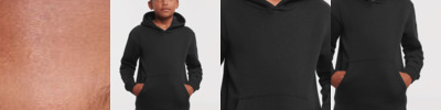 Contemporary slim fit. Raglan sleeves. Contrast neck tape with stitch detail. Jersey-lined hood with cover seam drawcord channel. Removable, adhesive neck label. Dyed to match flat drawcord with gun metal tipped ends. 2 x 1 rib on necklines, sleeve cuffs and waistband hems.